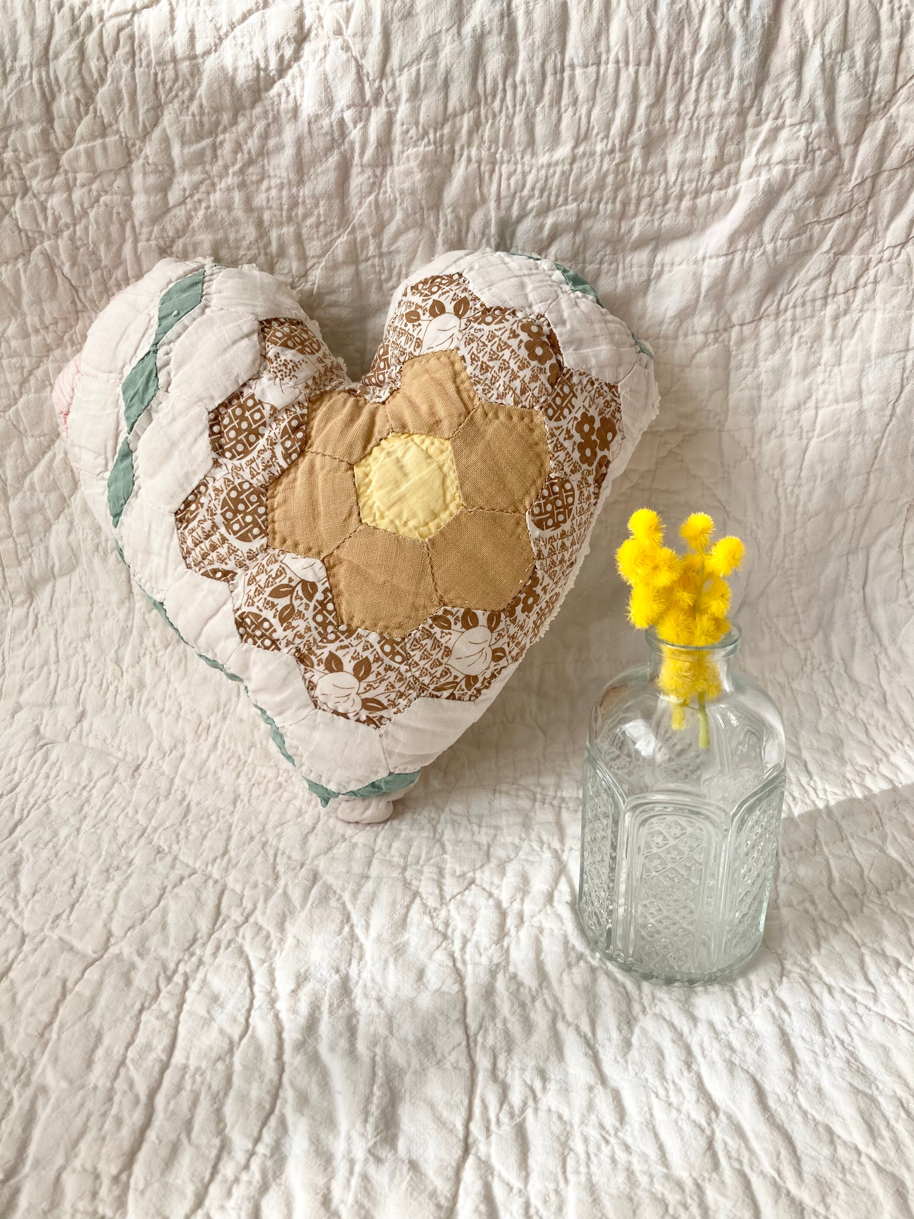心地よい肌触りと可愛らしいデザインで、日常をほっこりと包んでくれるハート型のキルトクッション。